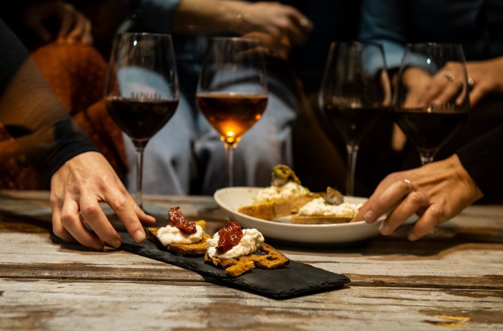 Per placare l’appetito ci sono i “Piatti Misti” (7 euro), taglieri di salumi toscani e formaggi pugliesi di qualità, ma è possibile anche ordinare gli “Sfizi” (4 euro l’uno), piccoli piattini a base di prelibatezze come la mozzarella BioBuò, eccellenza di Amaseno, il prosciutto crudo Falorni, i pomodorini “La Pacchetella”, le alici Reserva del Cantabrico LA NEF, i prodotti caseari della Fattoria Fiorentino e della Fattoria Palagiaccio oltre alle conserve sott’olio, pomodori secchi, carciofini arrosto e friarielli di Inserbo. Perfette per accompagnare un calice di vino sono anche le “Bruschette” disponibili in tre varianti: con pomodori (6 euro), con burro e alici (7 euro) o con friarielli (6 euro).