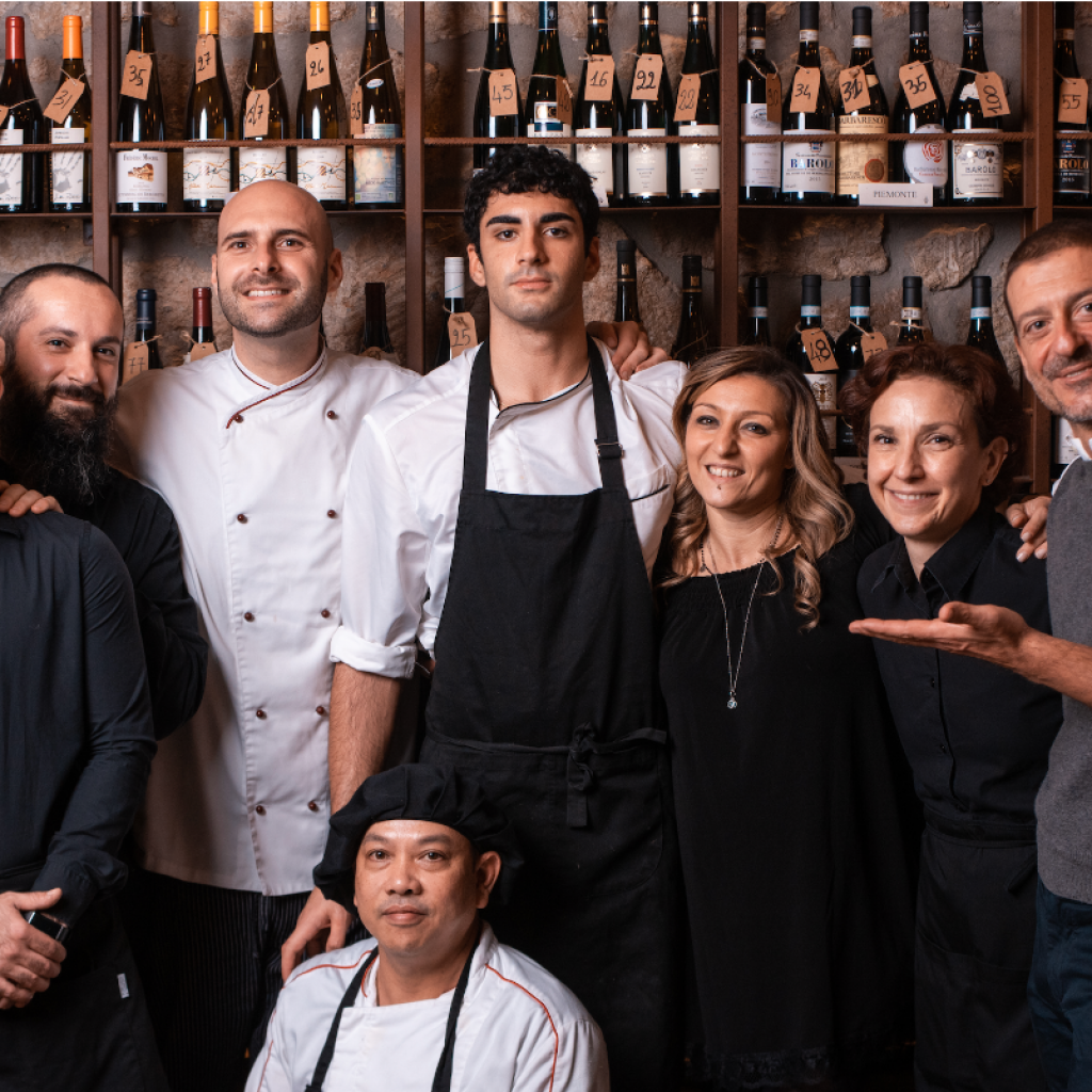 Qui si può venire per acquistare una bella bottiglia di vino o sedersi al tavolo per un’esperienza gastronomica di altissimo livello, e ritrovando al tavolo la stessa ampia scelta di vini e distillati dell’enoteca con prezzi identici allo scaffale. Inoltre la varietà di opzioni enoiche è tale da venire incontro a tutti i gusti con un’offerta che va dai semplici Frascati a elitari Bordeaux d’annata, dal Lambrusco più genuino al più blasonato degli Champagne. In cucina invece troviamo il giovane e bravissimo chef Tommaso Tonioni, che esprime una cucina raffinata e concreta, in costante evoluzione, basata sui contrasti forti e l’esaltazione di materie prime artigianali, scelte rigorosamente tra quelle di produttori e allevatori italiani attenti alla sostenibilità. Da provare Ostrica alla brace, lentisco e ocra romana, e il Raviolo “Melitta”, infusione di cera d’api e camuciolo.
