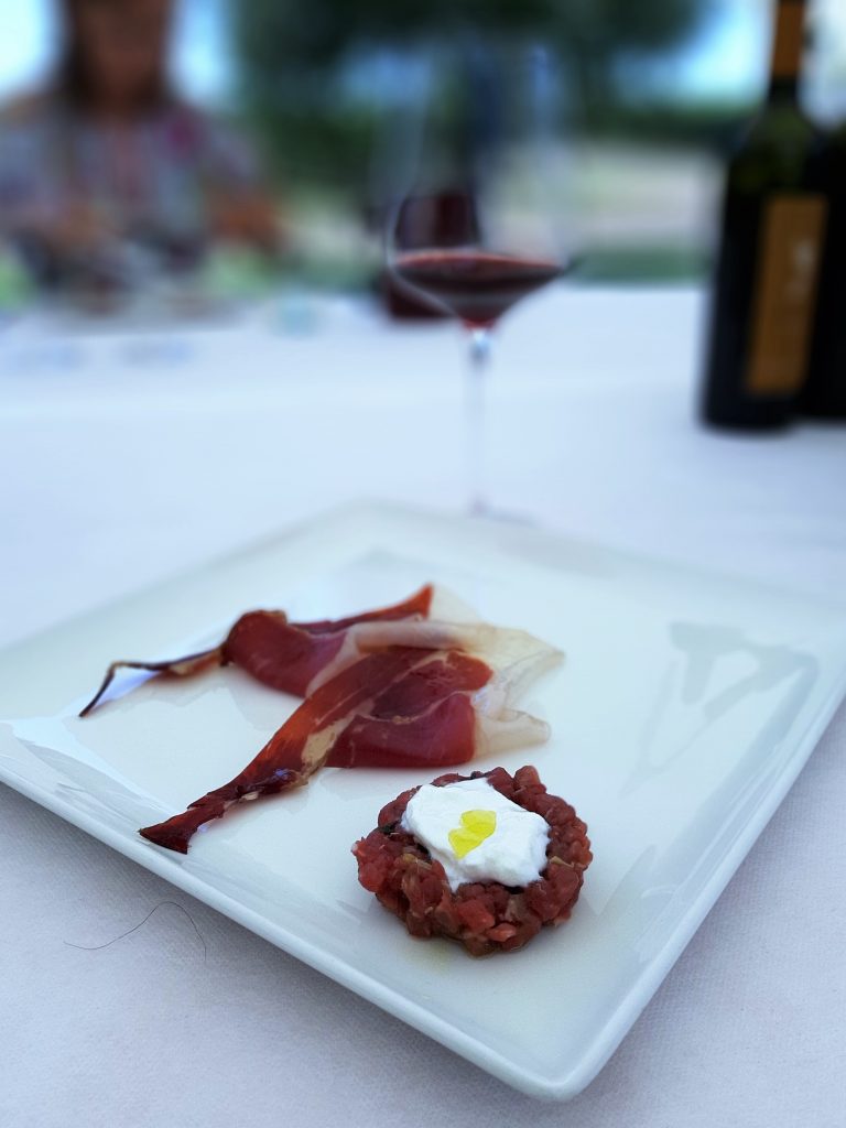 Leggiadro e molto versatile, ha accompagnato egregiamente il Prosciutto Mangalica, la Millefoglie di mozzarella di Bufala e frittielli cotti e crudi e la Tartare di Chianina con senape, capperi, erbette aromatiche e burratina pugliese.